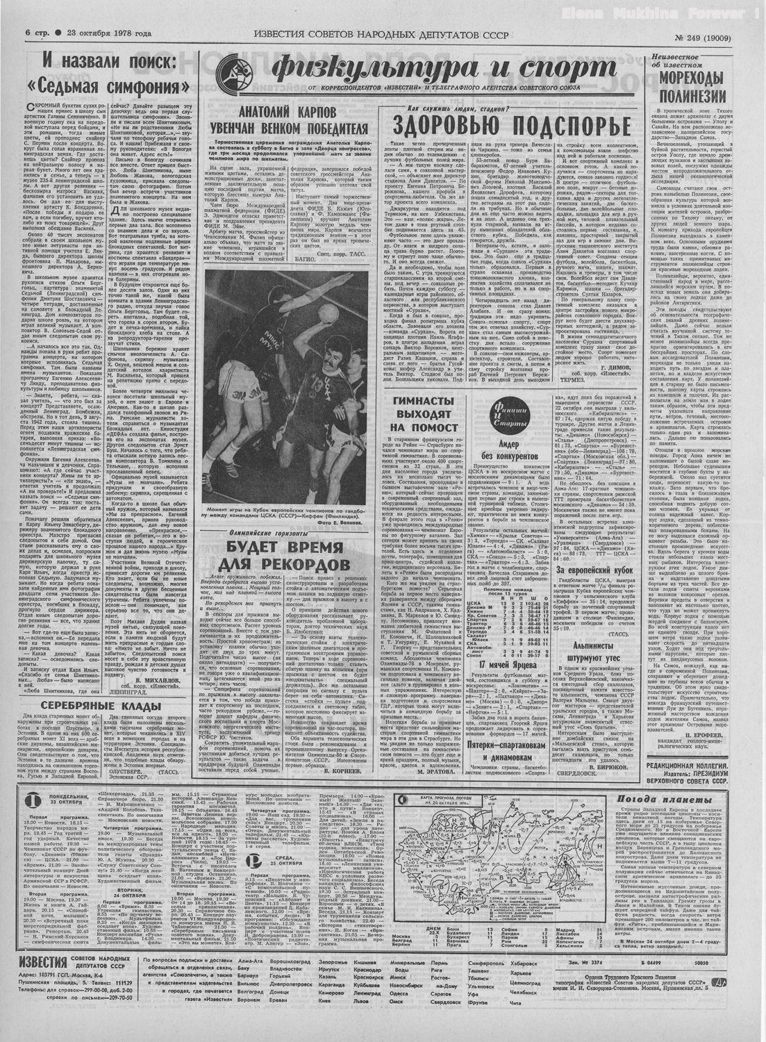 » Газета "Известия" 28 октября 1978 года